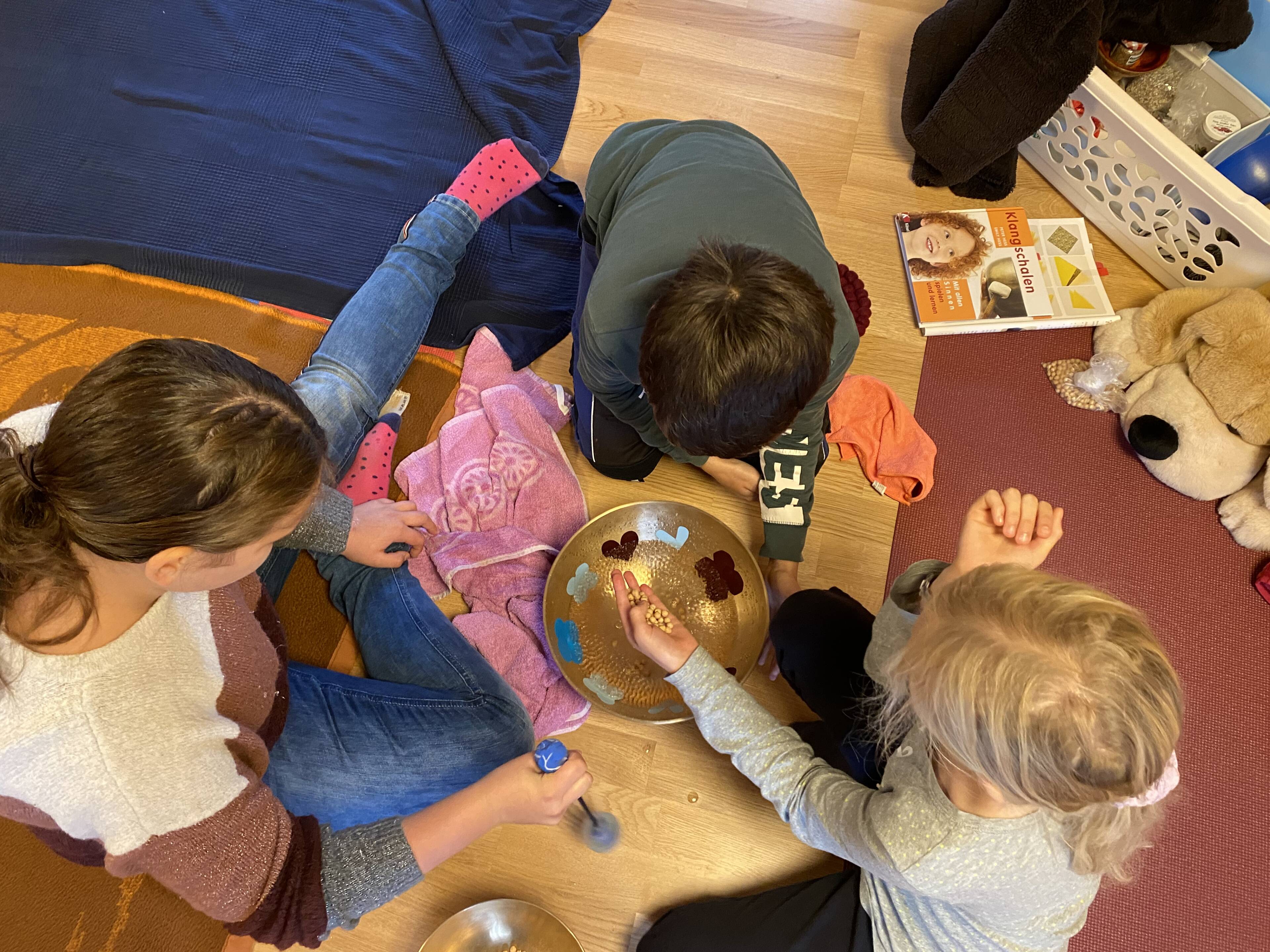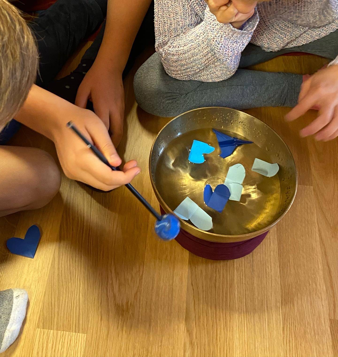 Die Klänge der Therapieklangschalen können wir hören und als Schall resp. Schwingung auch fühlen. Damit sprechen sie zwei Sinne an, die bereits pränatal voll ausgebildet sind – vielleicht ein Grund, warum die Klänge so schnell Gefühle von Vertrauen und Geborgenheit in uns wecken. Im Hören und Fühlen der Klänge erleben sich die Kinder in ihrer Ganzheit. Meist kommen sie dabei schnell zur Ruhe, die Aufmerksamkeit wird gebündelt und richtet sich mehr und mehr auf das innere Erleben.