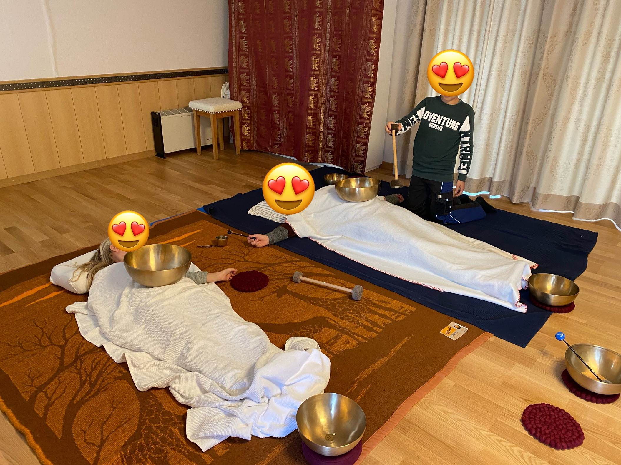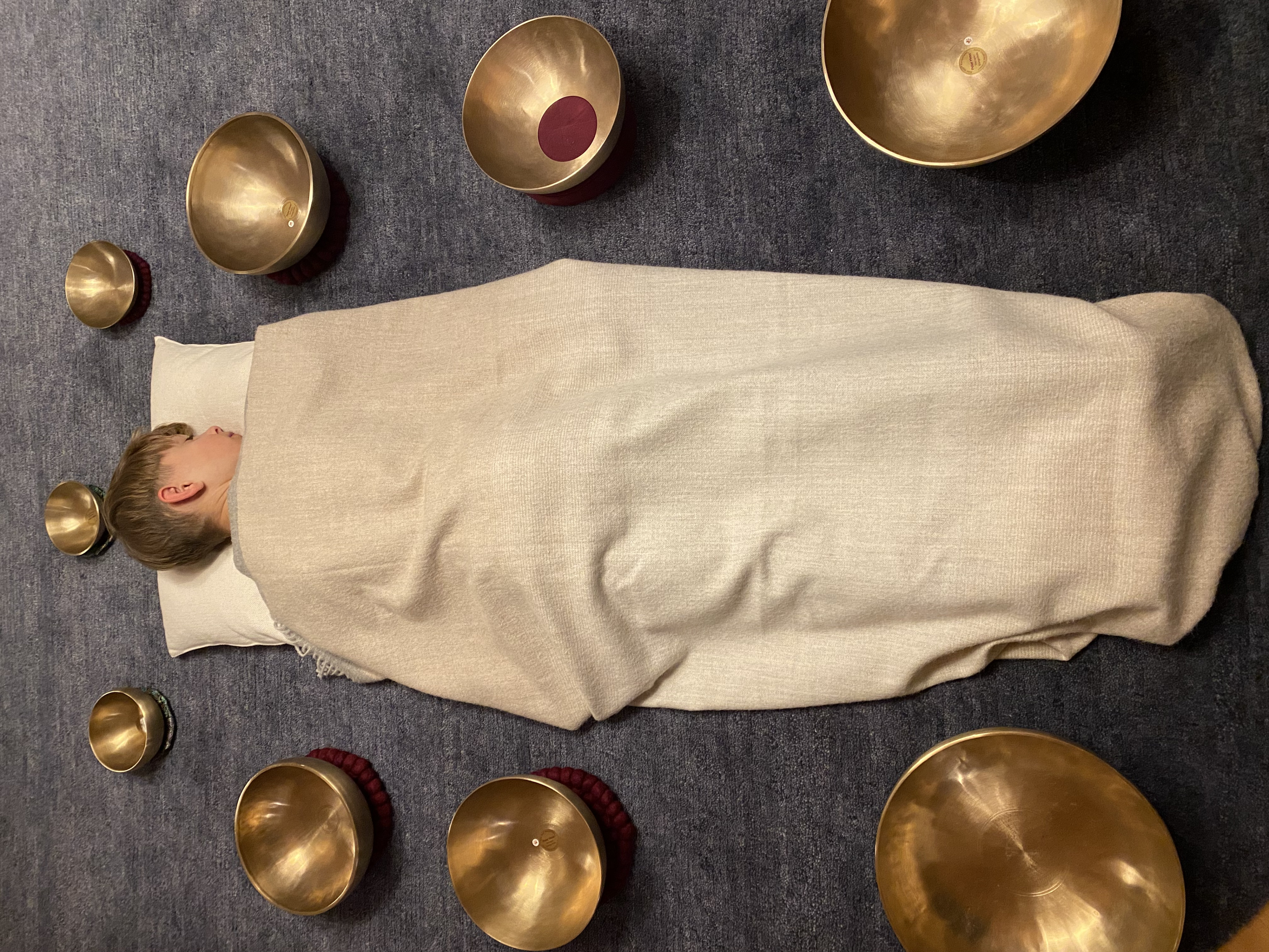 Grosse und kleine Therapieklangschalen werden um den Körper herum gestellt und sanft angeklungen. Du darfst in ein Bad der Klänge eintauchen, fühlst Dich umhüllt und geborgen und kannst dein Urvertrauen stärken. Eignet sich für Personen, bei welchen die Klangschalen aus gesundheitlichen Gründen nicht auf den Körper gestellt werden dürfen.