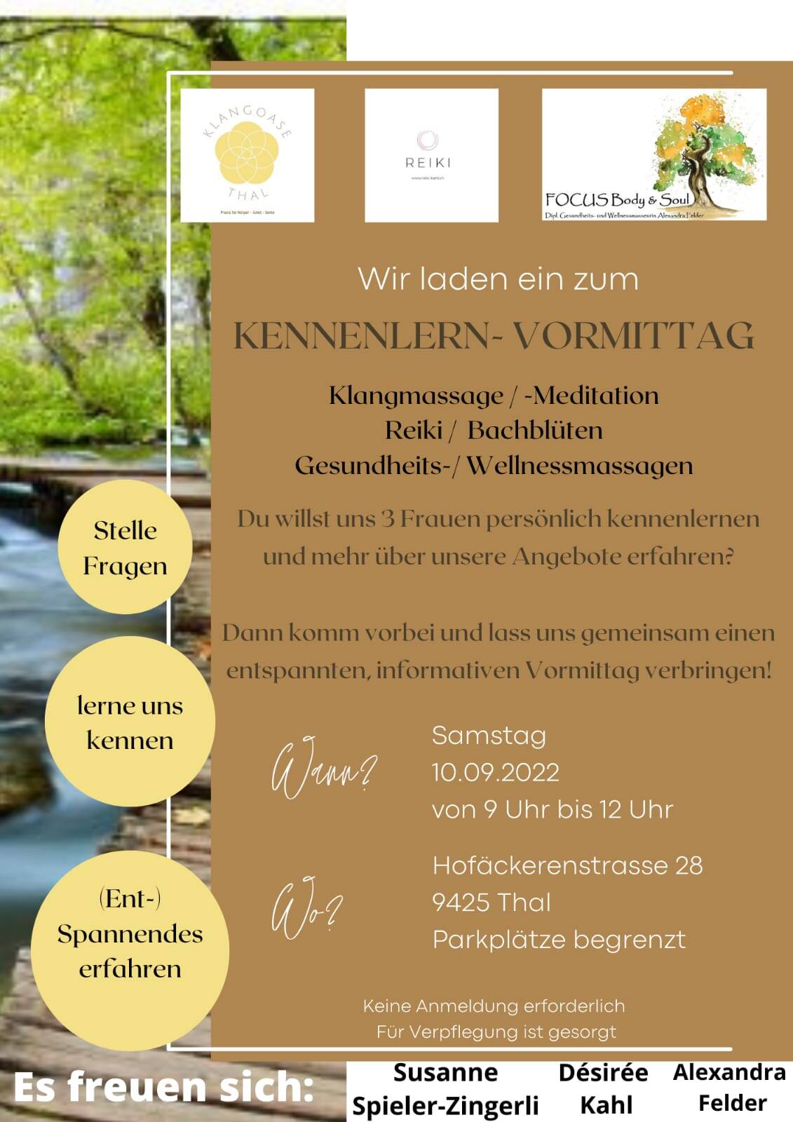 - Kennenlern-Vormittag zusammen mit Désirée von Reiki Kahl - Reiki und Bachblüten - und Alexandra von Focus Body & Soul - Wellness- und Gesundheitsmassagen