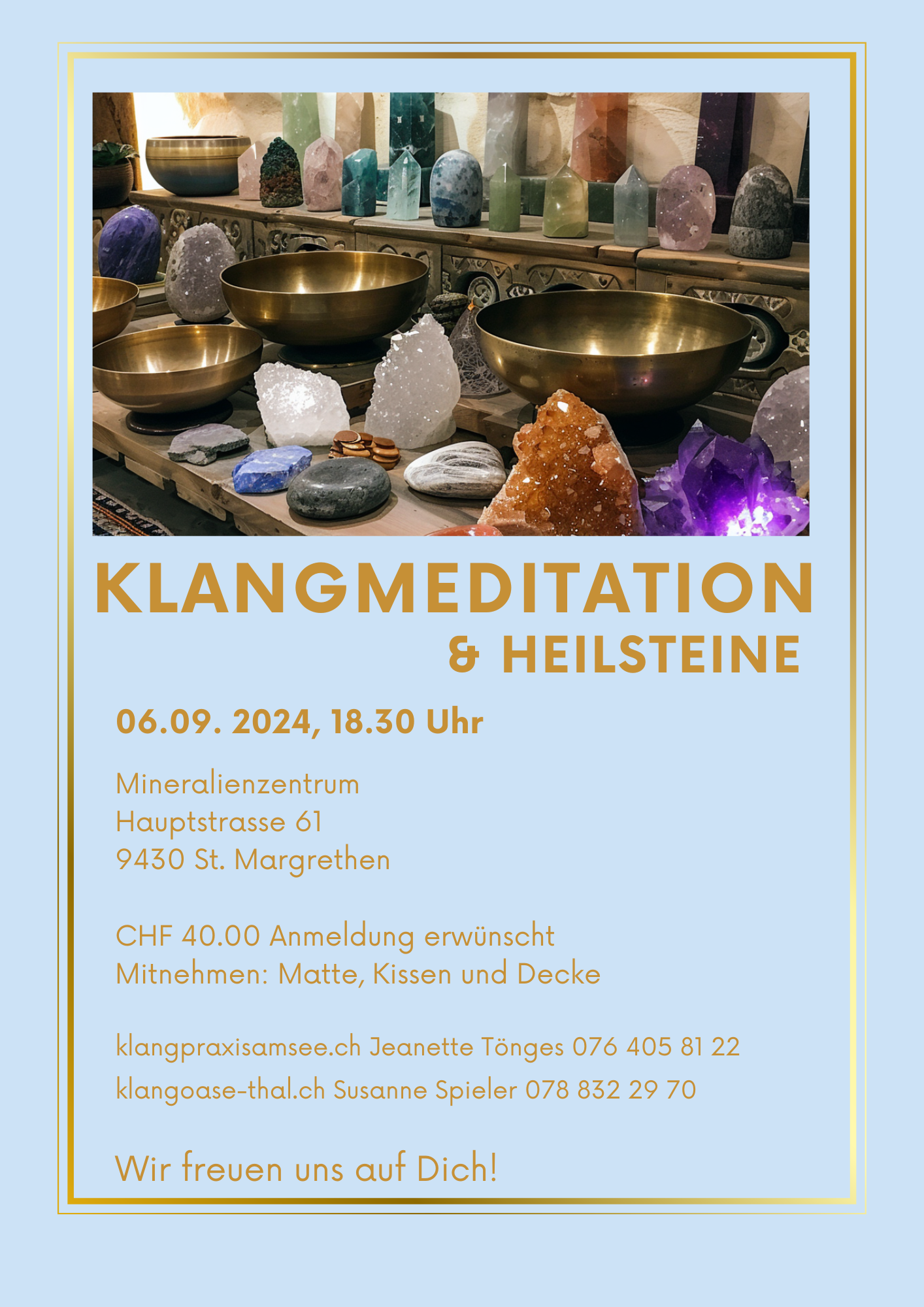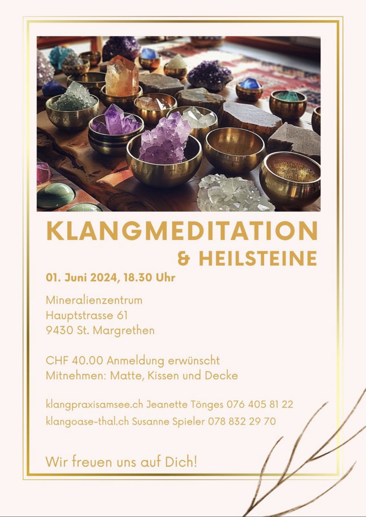 - Klangmeditation & Heilsteine mit Jeanette Tönges (Klangpraxis am See) im Mineralienzentrum St. Margrethen